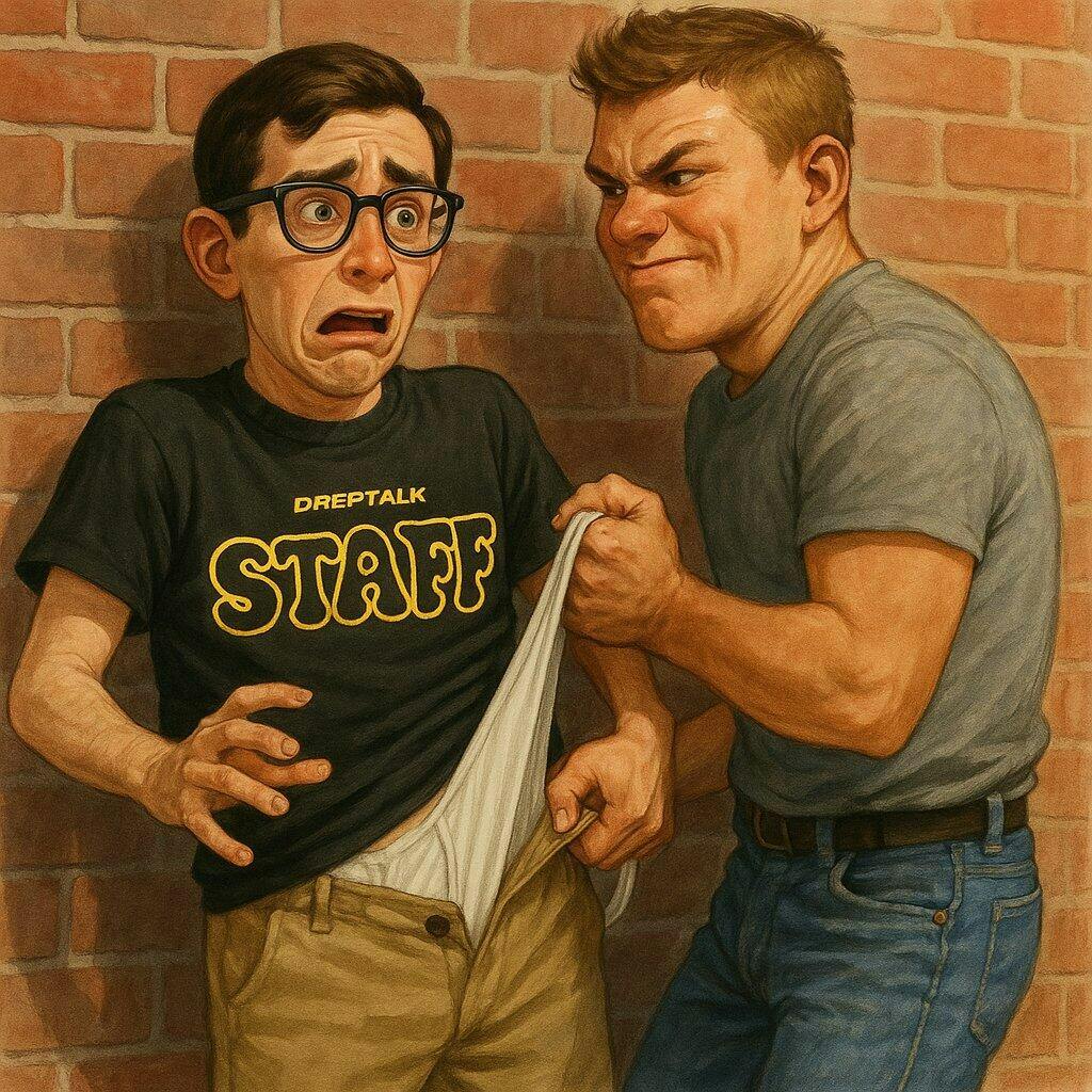 „Für das Shirt gibt's keine Entschuldigung“, rief er aus und verschwand dann mit seinen Kumpels in einem Sturm aus Lachen.